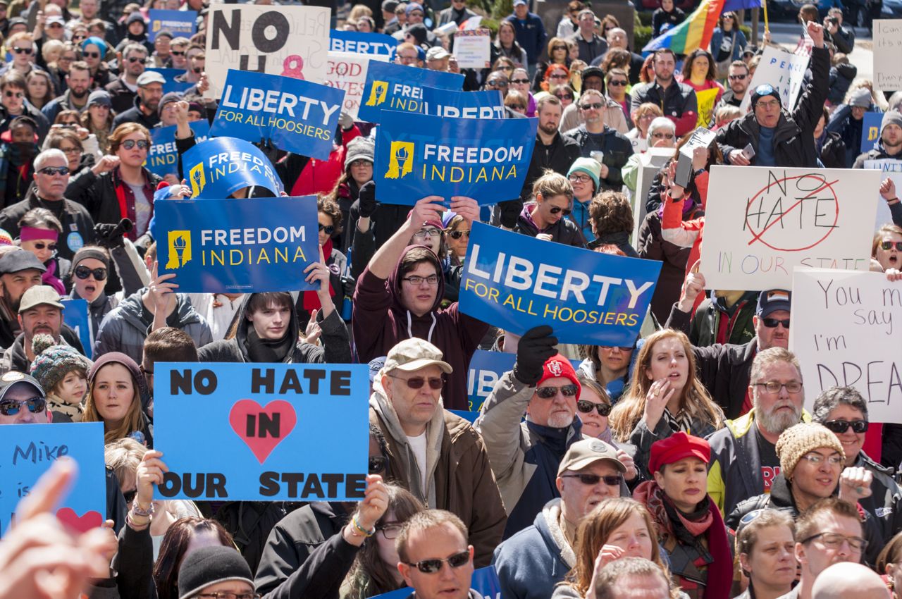 Yes, on paper, this law is about religious freedom, so, rhetorically, why all the controversy? Of course, timing is everything. As of March 2015, thirty-seven states permit same-sex unions, determined either by referendum or by court-mandate. I am sure Indiana and twelve other states recognize that their resistance to same-sex marriages is coming to a close. For many in these states and others, this is an issue deeply grounded in faith and religious convictions. The situation could be compared to taking some really bad medicine–that this is happening against their will, and they are being forced to tolerate or accept foreign values. For others, this is a rights issue. A group of people are not being treated equally, and are being singled out for having a preference that strays from tradition. They see this as a civil rights issue.